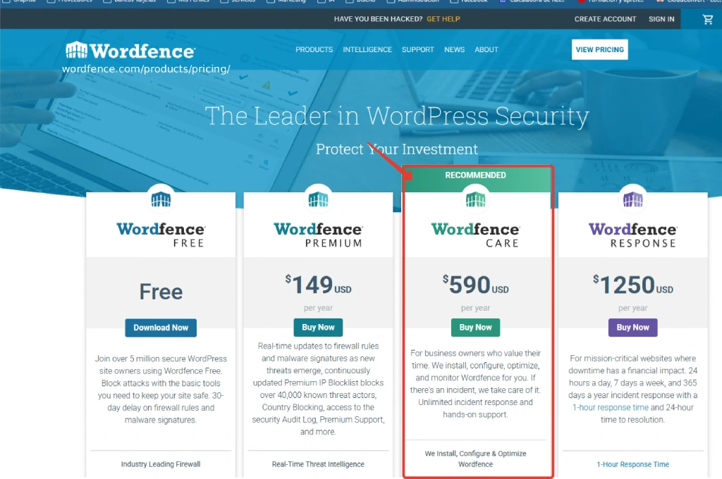Entre las opciones más populares y reconocidas esta Wordfence, en esta plataforma su Plan Care es el que ofrece arreglar su sitio en caso de incidentes. Los planes más bajos se limitan a alertar.